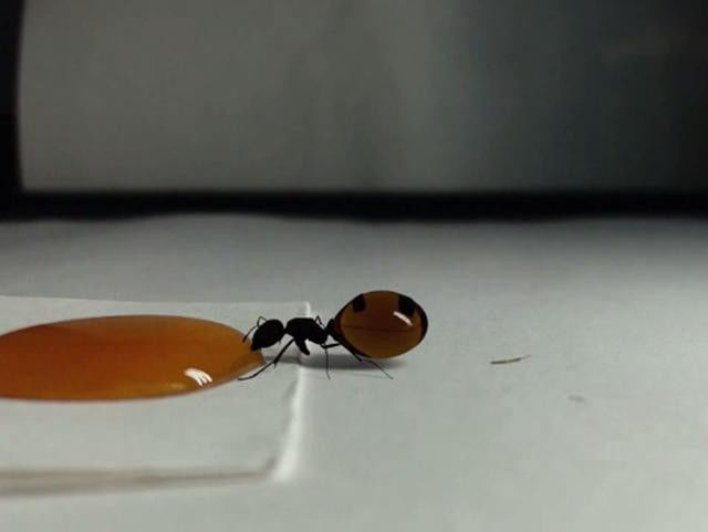 这一天某男子发现了一只蚂蚁在地上,于是就故意在地上弄了一点蜂蜜,看看这只蚂蚁会怎么做,刚开始蚂蚁只是到处闻闻试试,并且在四周转了一圈,就好像是一个智者在巡视着什么,在确保安全之后就开始行动了。