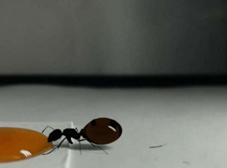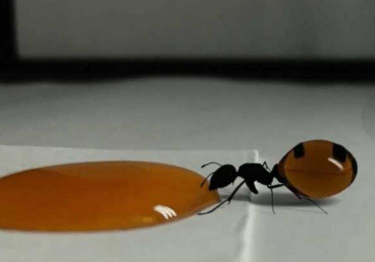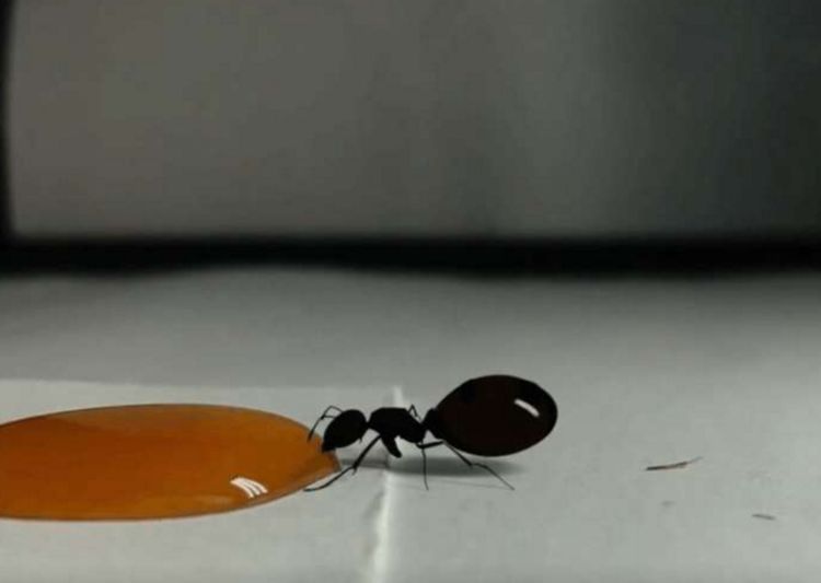 有位男子想抓蚂蚁,因为家里的糖老是被偷吃。于是在桌子上滴下了一滴蜂蜜,他因为手头上的事情还没有忙完,所以都没有机会一直盯着。但是没想到就一会的功夫竟然引来了一个小家伙,这是一只蚂蚁它直接就朝着这滴蜂蜜走了过来,它张嘴就开始吃。