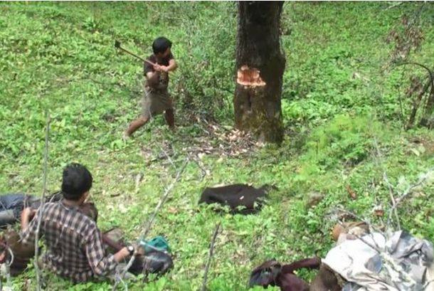 在一个深山时,几个越南男子正在砍一棵10米多高的大树,这棵大树已经有很多年头了,长的很高大,年龄比这几个砍树的人可要大的多了!他们砍这棵树不是为了要这棵树,而是为了获取一样东西!